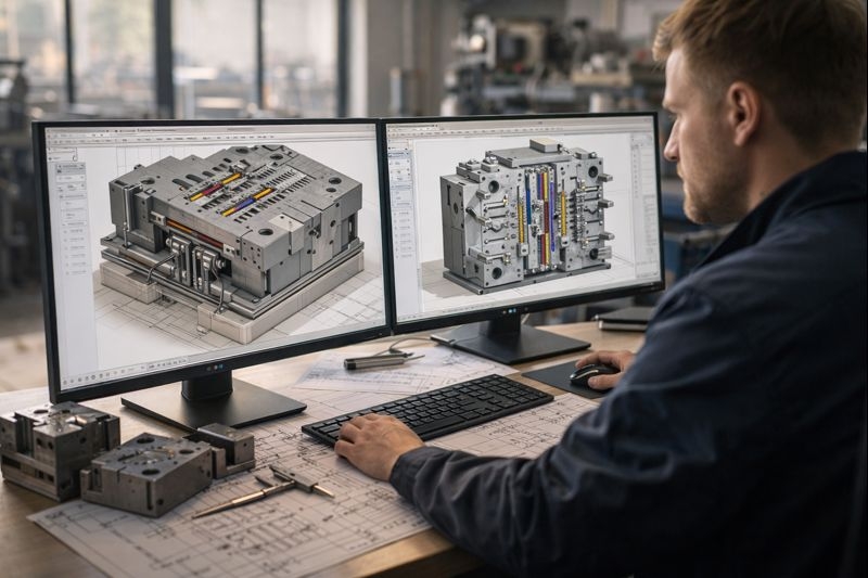 Проект начинается с 3D-модели будущего изделия. Инженеры анализируют геометрию, толщину стенок, направление потока и точки впрыска. Используется CAD/CAM-ПО (Siemens NX, SolidWorks, Autodesk Moldflow), позволяющее моделировать поведение расплава внутри полости.