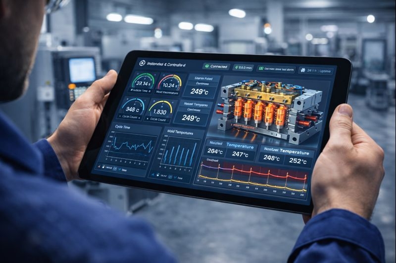 Датчики, встроенные в горячеканальную систему, передают информацию в реальном времени. Если термопара отклоняется от нормы на 2 °C, оператор видит предупреждение. - Предиктивный ремонт.