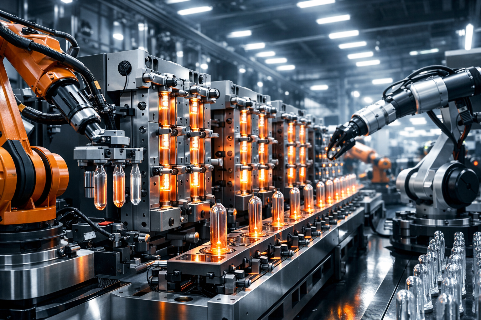 Такой подход позволяет нам гарантировать, что каждая преформа выходит без дефектов, геометрия сохраняется от цикла к циклу, а использование ПЭТ-гранулята остаётся максимально рациональным.